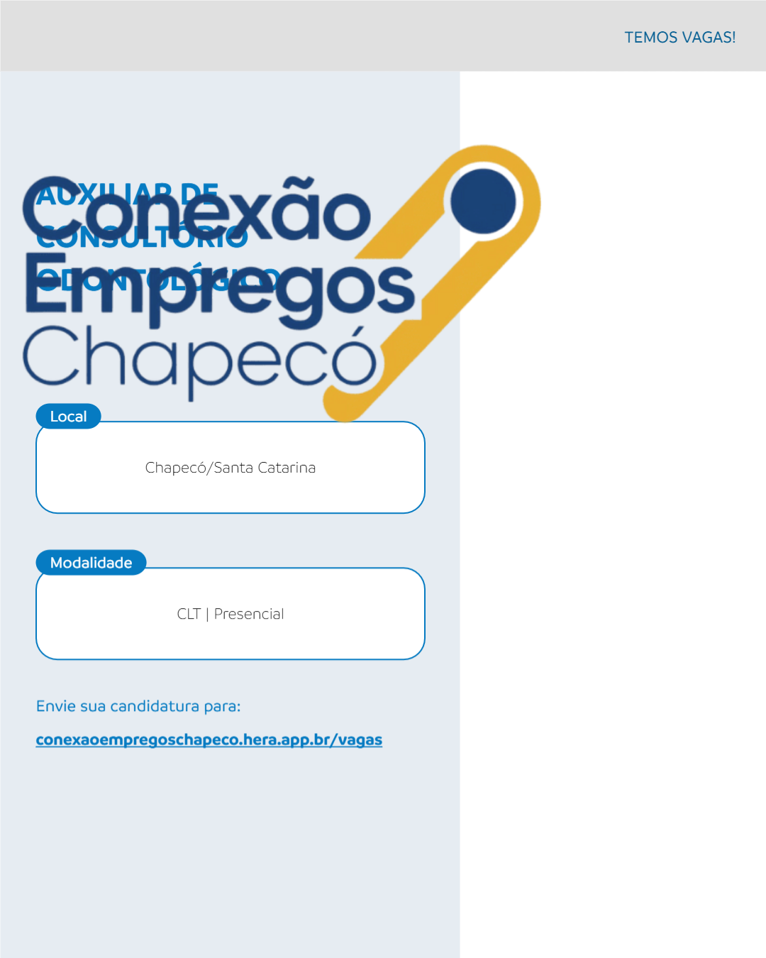 Atividades: recepção de pacientes, agendamento, cobrança, auxiliar na sala de atendimento